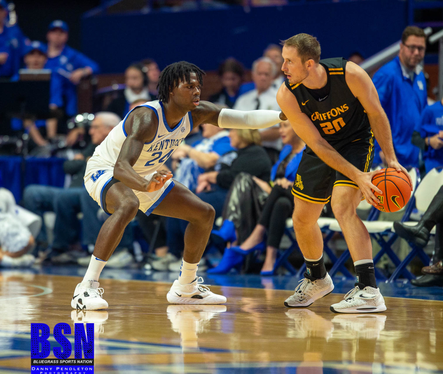 The first basket of the game was and and-one jumper by C.J. Fredrick. The Cats went on a 3 min scoring drought that allowed MSS to take a 6 to 5 lead at the first media timeout. The Wildcat stormed back and gained an eight-point lead while making a 9-0 run. The Cats went on another scoring drought of 4 minutes, but the Griffins were unable to pull closer. The first half ended with the Cats ahead 26 to 18. Turnovers late in the half prevented the Wildcats from pulling away from the Griffins, but their defense didn’t allow Missouri Western to close the game. Kentucky had 8 first half blocks, led by Ugonaa Onyenso who had 5 blocks. Jacob Toppin led both teams with 9 points and led the Cats with 3 rebounds in the first 20 minutes.