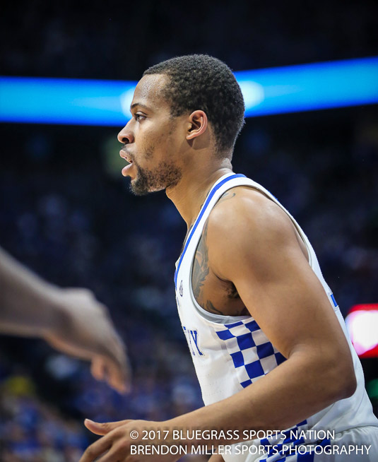 After taking an early 9-0 lead, the Wildcats watched as both of their starting guards Malik Monk and DeAaron Fox had to leave the game with two fouls each, less than four minutes into the contest.  With Monk and Fox on the sidelines the Commodores went on a 15-6 run, so blow-out adverted, game on.  The rest of the game was a close contested affair.  With the Wildcats struggling to get their composure, Coach Calipari went away from his normal tendency to keep a player on the bench with two fouls until halftime.  He re-inserted Monk back into the game at the 12:00 mark and Fox rejoined the game with 9:00 minutes to go in the half.  It was a risk the UK coach decided to take in order to regain control of the game.