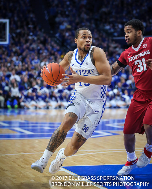 After taking an early 9-0 lead, the Wildcats watched as both of their starting guards Malik Monk and DeAaron Fox had to leave the game with two fouls each, less than four minutes into the contest. With Monk and Fox on the sidelines the Commodores went on a 15-6 run, so blow-out adverted, game on. The rest of the game was a close contested affair. With the Wildcats struggling to get their composure, Coach Calipari went away from his normal tendency to keep a player on the bench with two fouls until halftime. He re-inserted Monk back into the game at the 12:00 mark and Fox rejoined the game with 9:00 minutes to go in the half. It was a risk the UK coach decided to take in order to regain control of the game.
