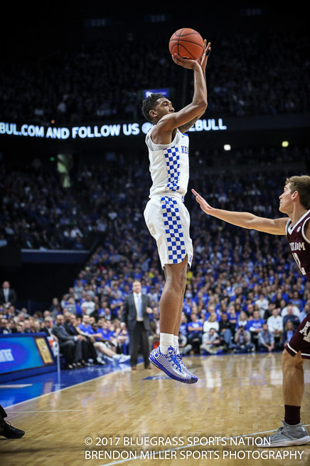After taking an early 9-0 lead, the Wildcats watched as both of their starting guards Malik Monk and DeAaron Fox had to leave the game with two fouls each, less than four minutes into the contest.  With Monk and Fox on the sidelines the Commodores went on a 15-6 run, so blow-out adverted, game on.  The rest of the game was a close contested affair.  With the Wildcats struggling to get their composure, Coach Calipari went away from his normal tendency to keep a player on the bench with two fouls until halftime.  He re-inserted Monk back into the game at the 12:00 mark and Fox rejoined the game with 9:00 minutes to go in the half.  It was a risk the UK coach decided to take in order to regain control of the game.