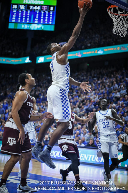 After taking an early 9-0 lead, the Wildcats watched as both of their starting guards Malik Monk and DeAaron Fox had to leave the game with two fouls each, less than four minutes into the contest.  With Monk and Fox on the sidelines the Commodores went on a 15-6 run, so blow-out adverted, game on.  The rest of the game was a close contested affair.  With the Wildcats struggling to get their composure, Coach Calipari went away from his normal tendency to keep a player on the bench with two fouls until halftime.  He re-inserted Monk back into the game at the 12:00 mark and Fox rejoined the game with 9:00 minutes to go in the half.  It was a risk the UK coach decided to take in order to regain control of the game.